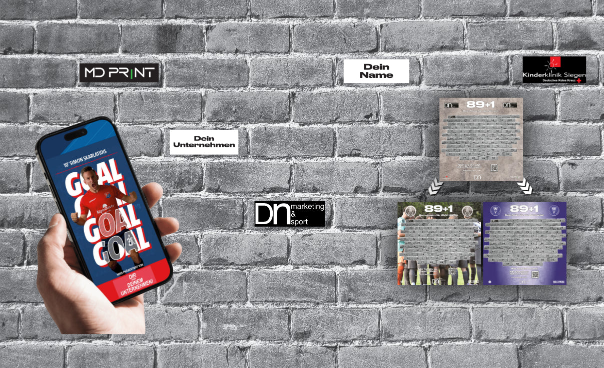 Sichere Dir Deine Spielminute und Dein Name oder Unternehmenslogo sind permanent auf der Sponsorenwand Deines Vereins zu sehen!