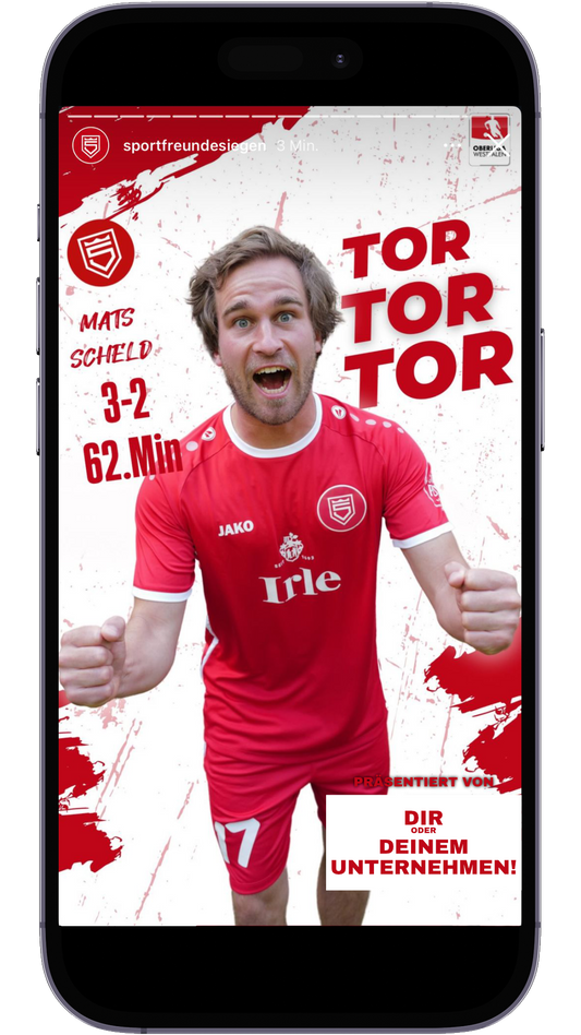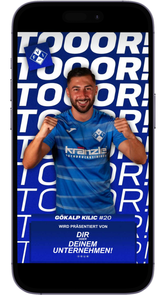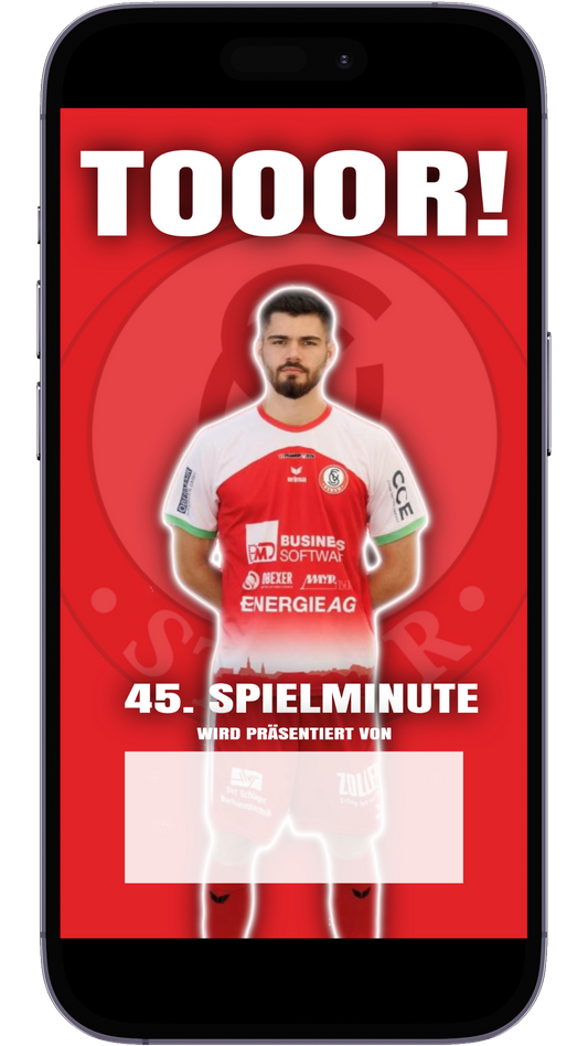 Fällt in Deiner Spielminute ein Tor, präsentierst Du das Tor Deiner Mannschaft über die die offiziellen Social-Media-Kanäle und im Stadion!
