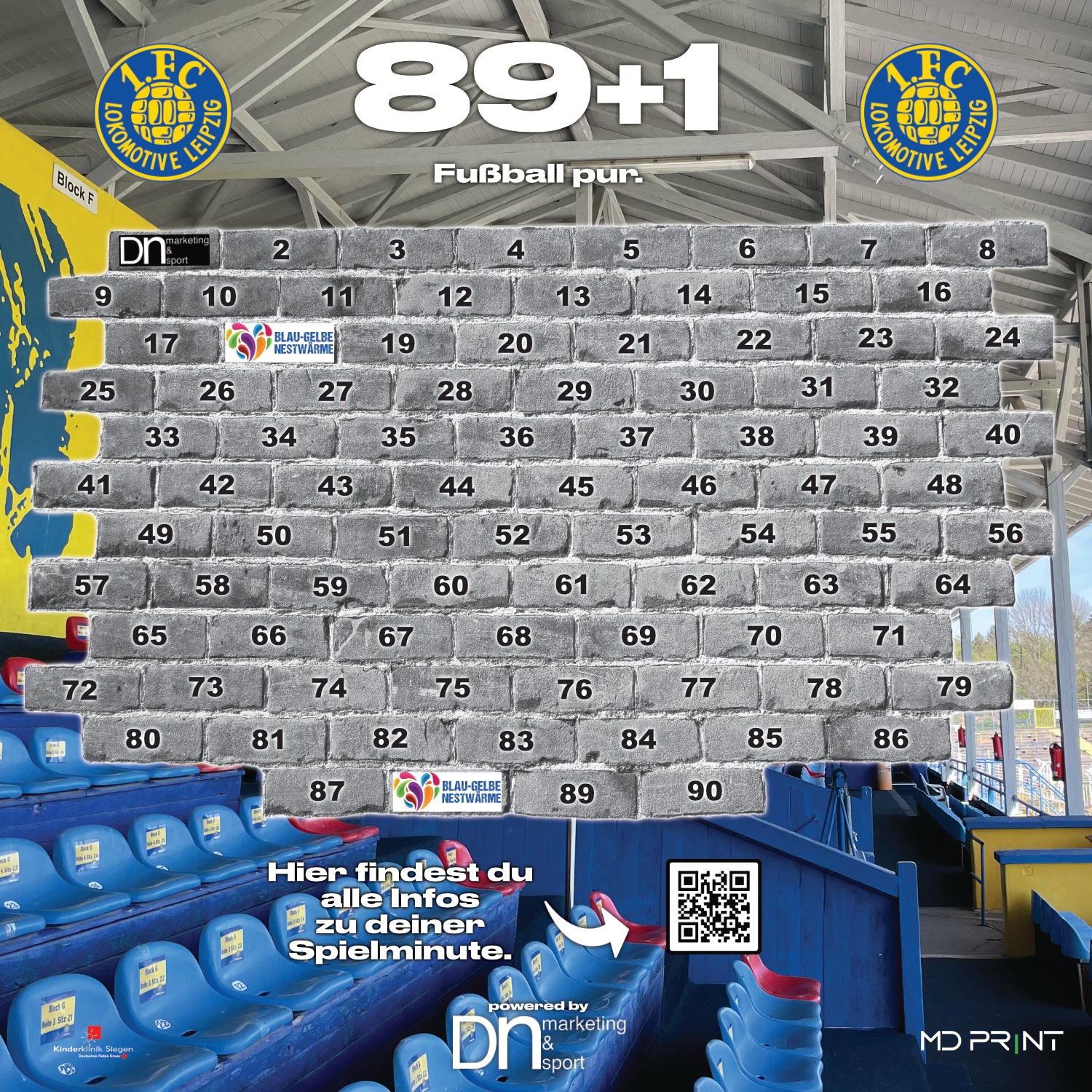 Unterstütze den 1. FC Lokomotive Leipzig mit deinem Stein auf der Sponsorenwand 89+1!